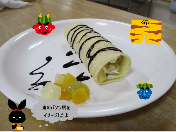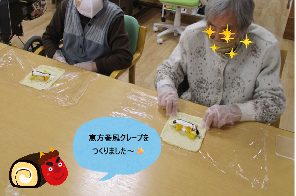 2月3日に節分の行事として、おやつに恵方巻風クレープをつくりました💖